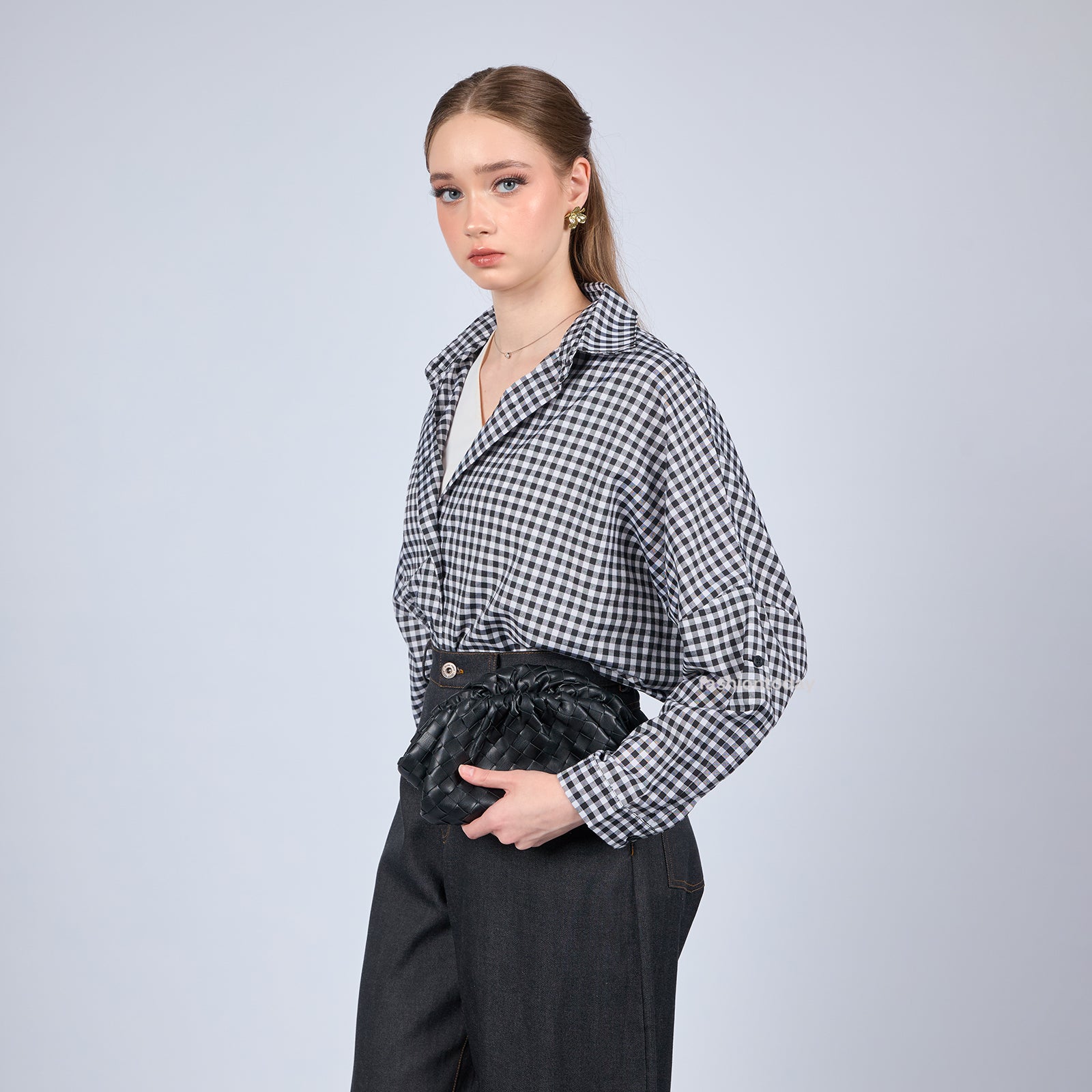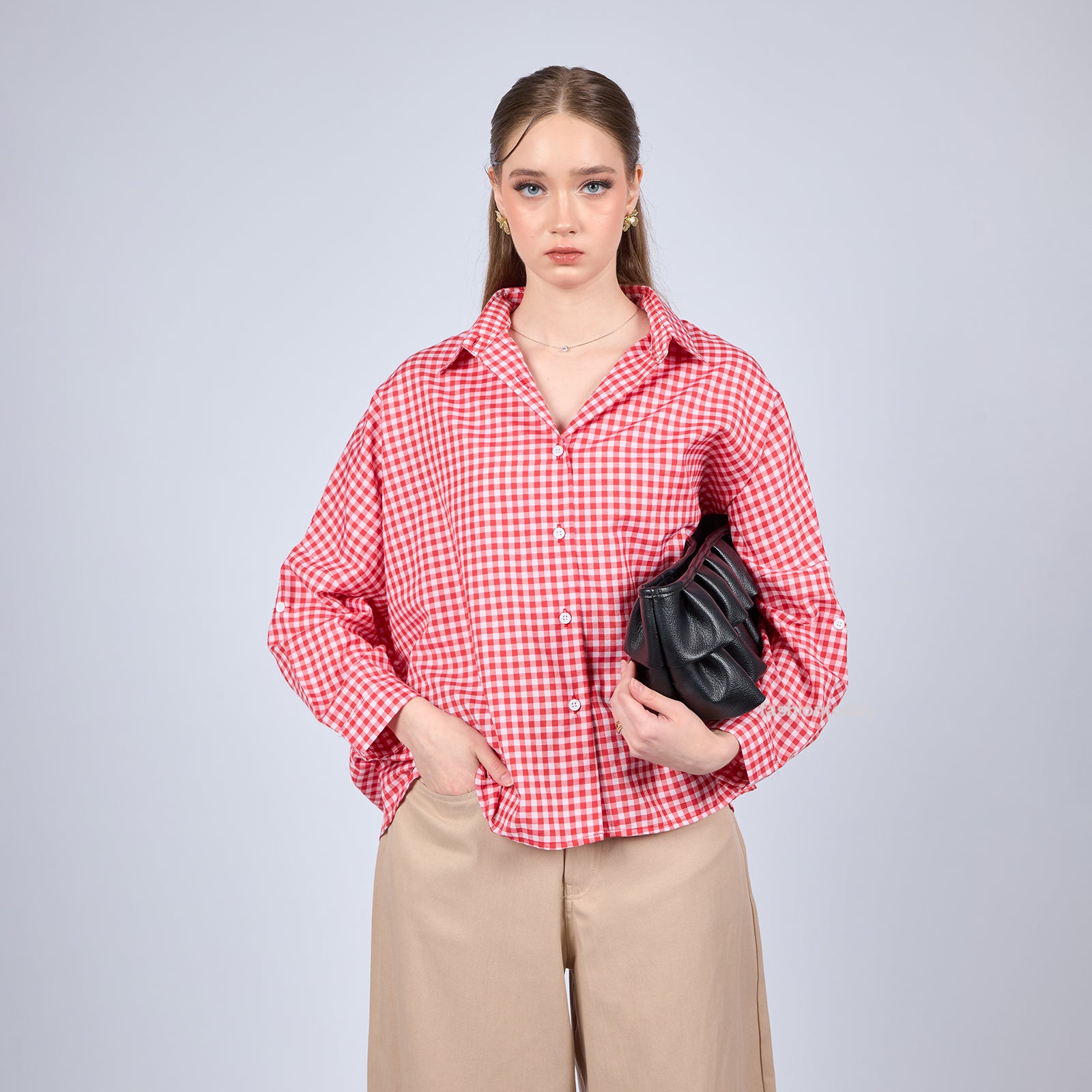 * Kemeja wanita bahan Premium Yarn-Dyed Cotton Poly Blend