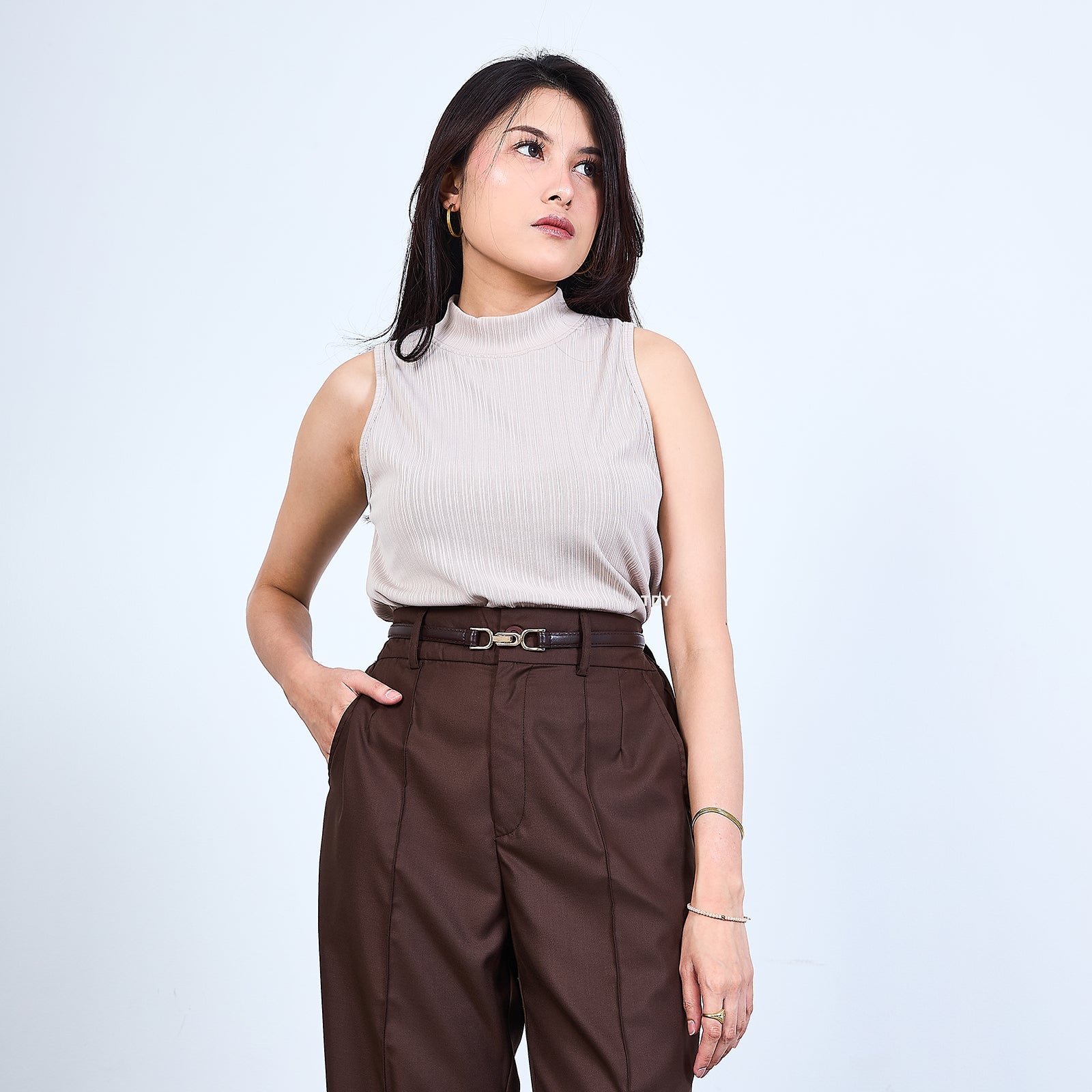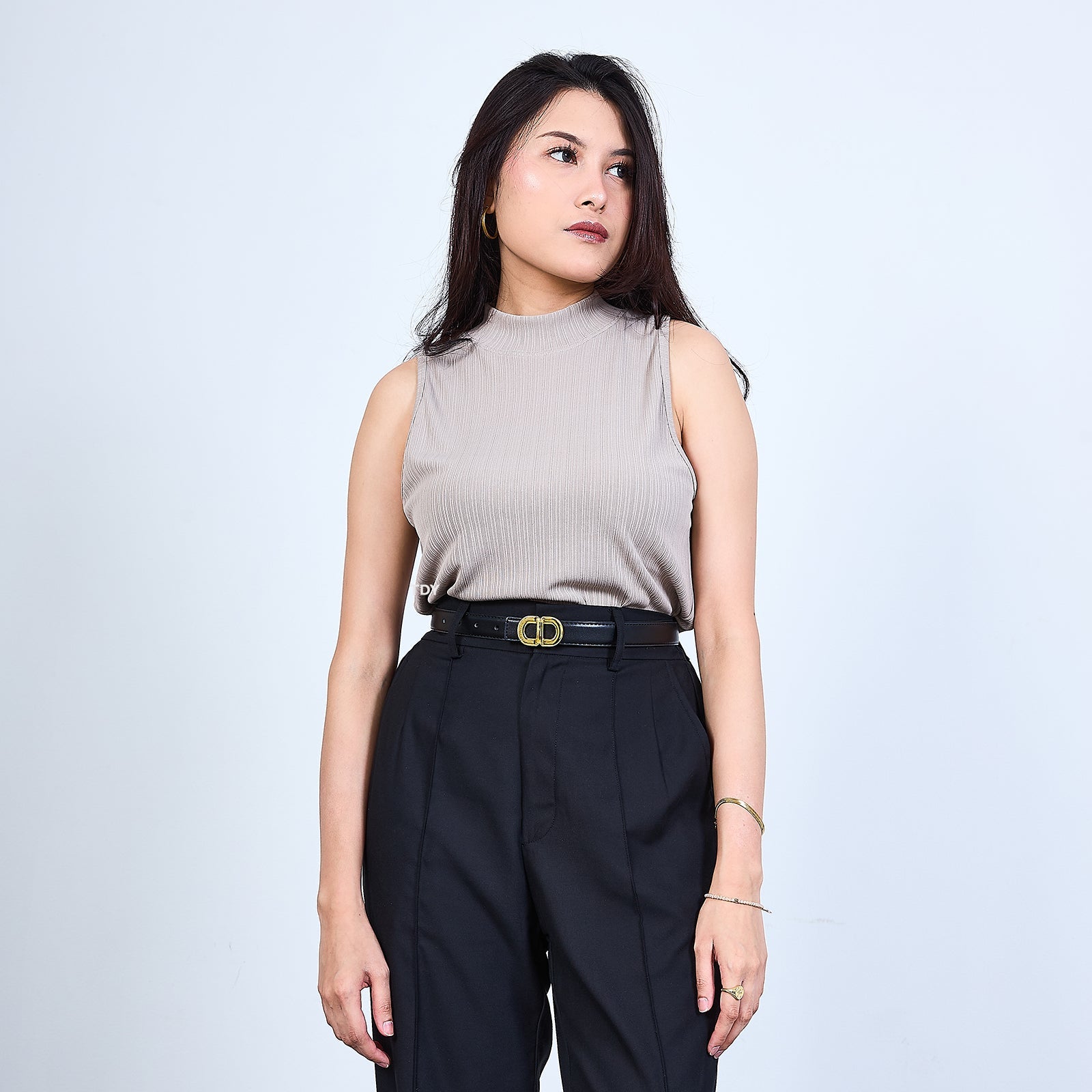 * Bentuk leher bulat turtleneck